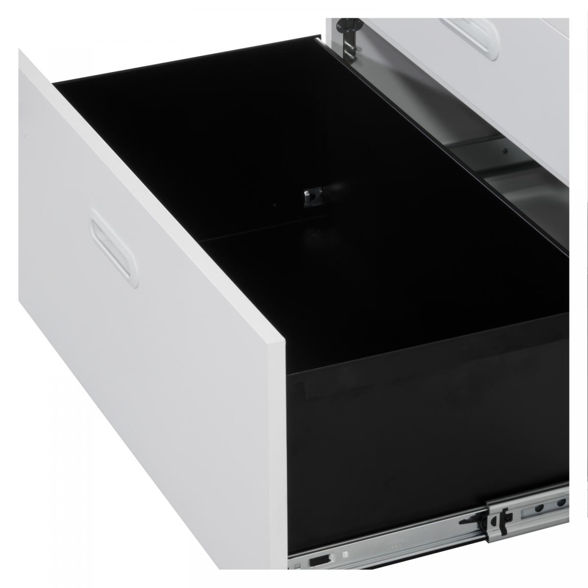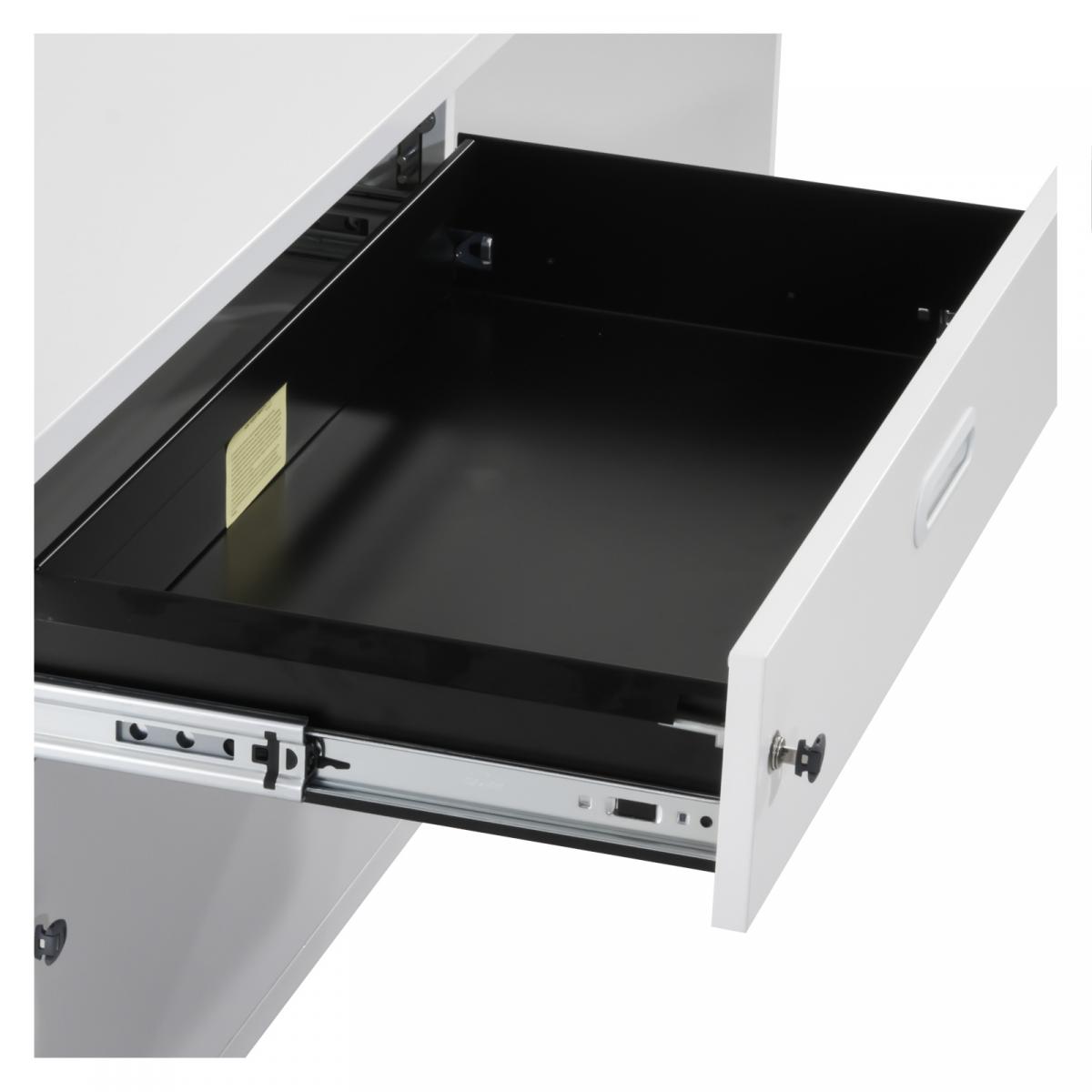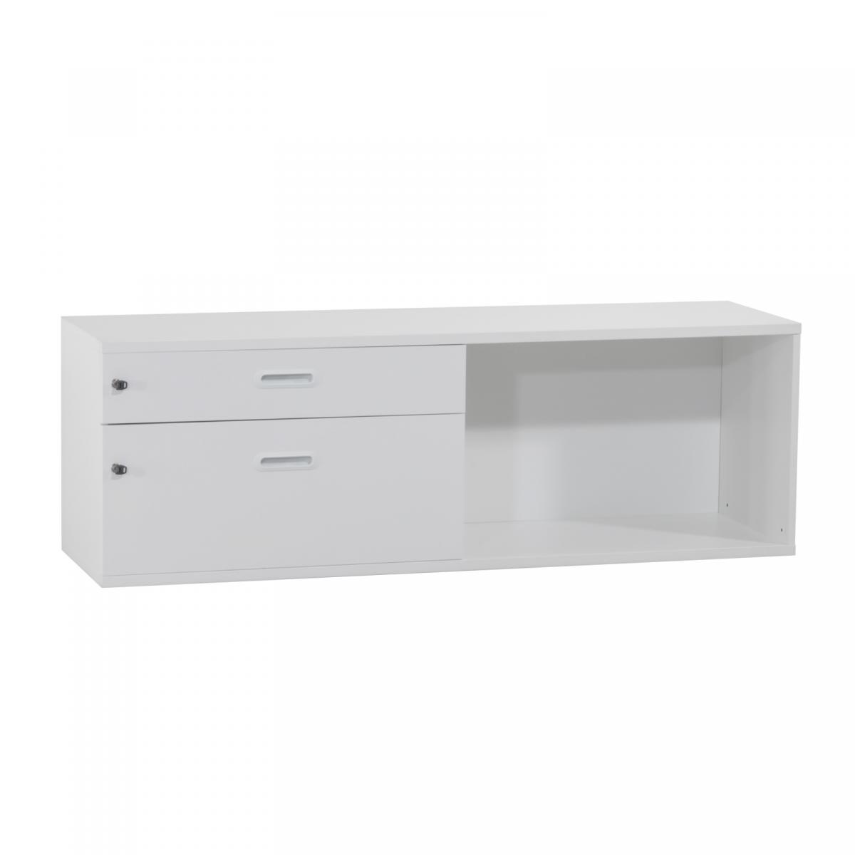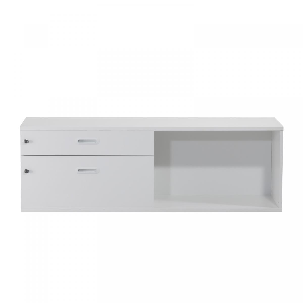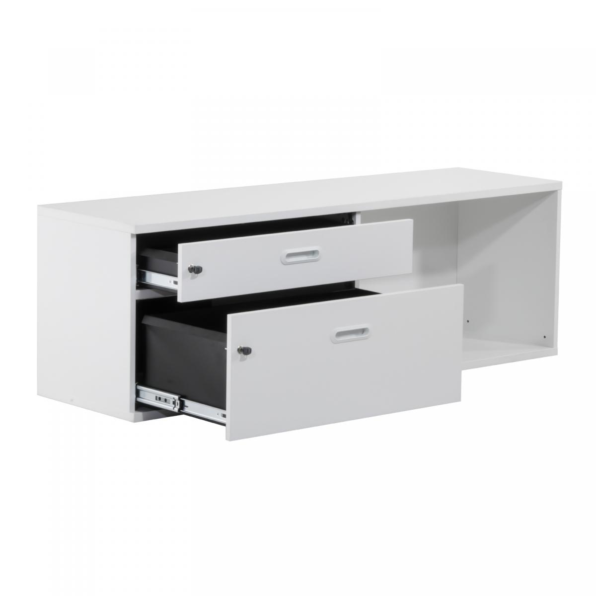 Sideboard mit 2 Schubladenauszügen 1x mittelhohe Schublade 1x hohe Schublade Schubladen mit geschlossener Metallwanne Fronten mit Griffmulde 1x offenes Regalfach einstellbare Bodengleiter Schubladen sind abschließbar |