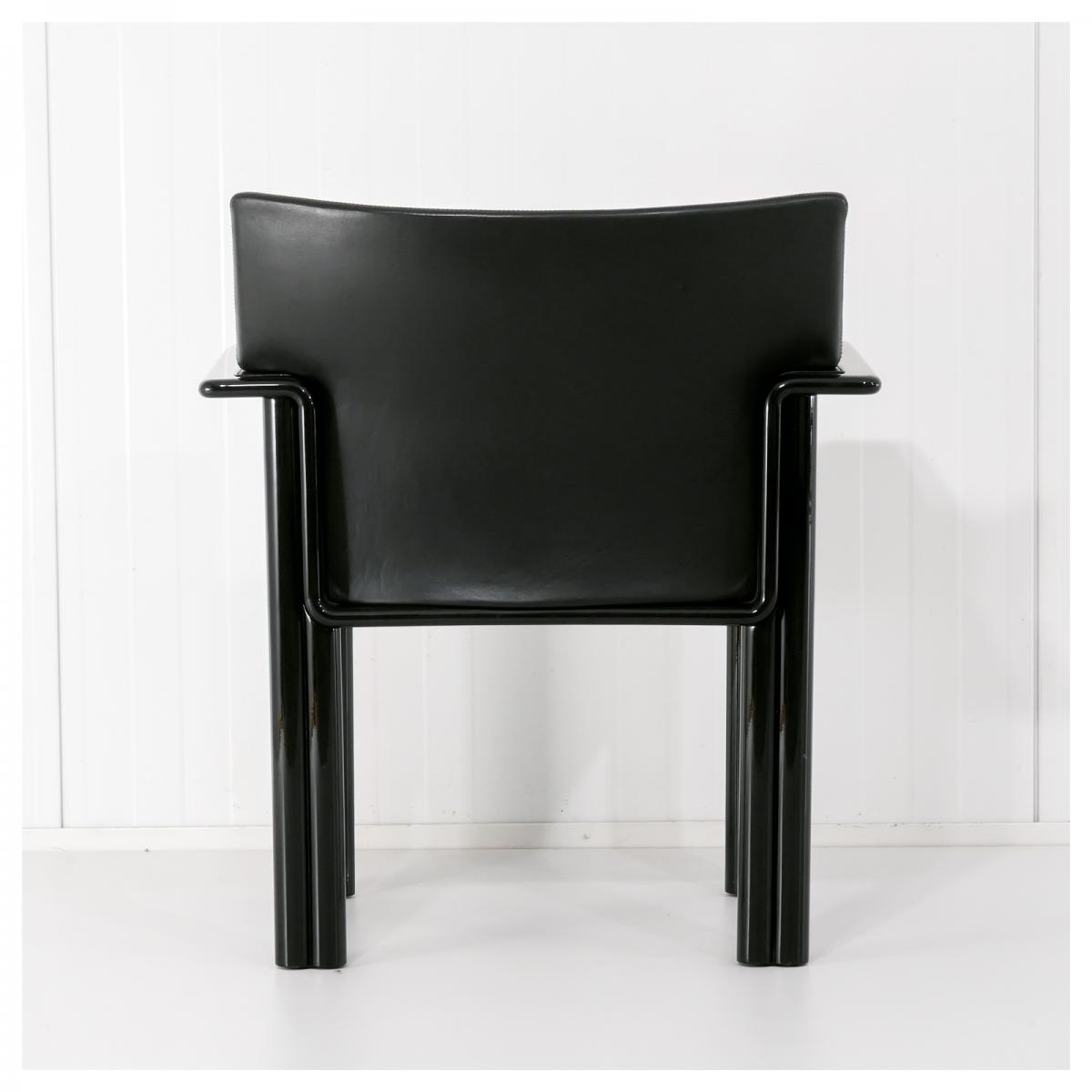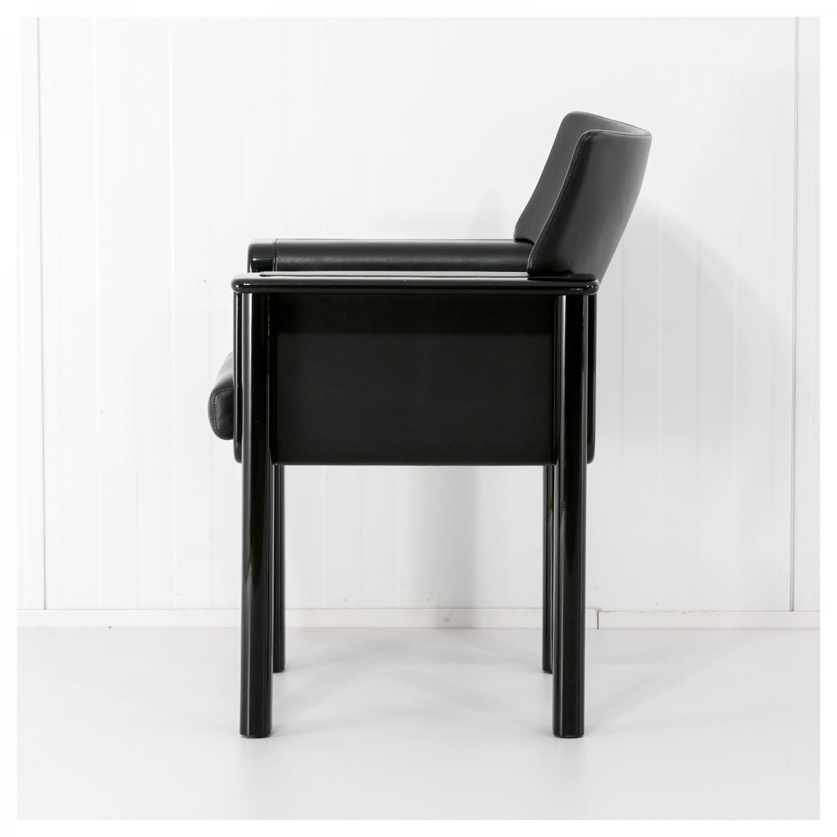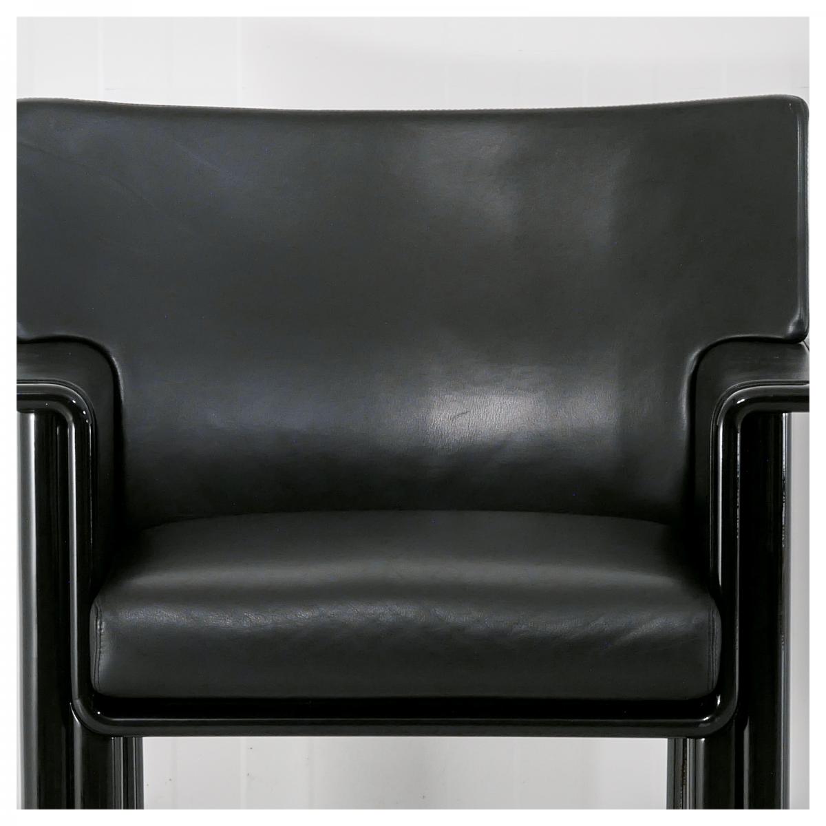Designer: Tobia Scarpa preisgekröntes, postmodernes Design aus Italien bequem gepolstertes Sitzkissen komplett mit schwarzem Leder bezogen Gestell aus Vollholz mit Polyurethan-Überzug (Klavierlackoptik) geschwungene Rückenlehne Bezug in Echtleder |