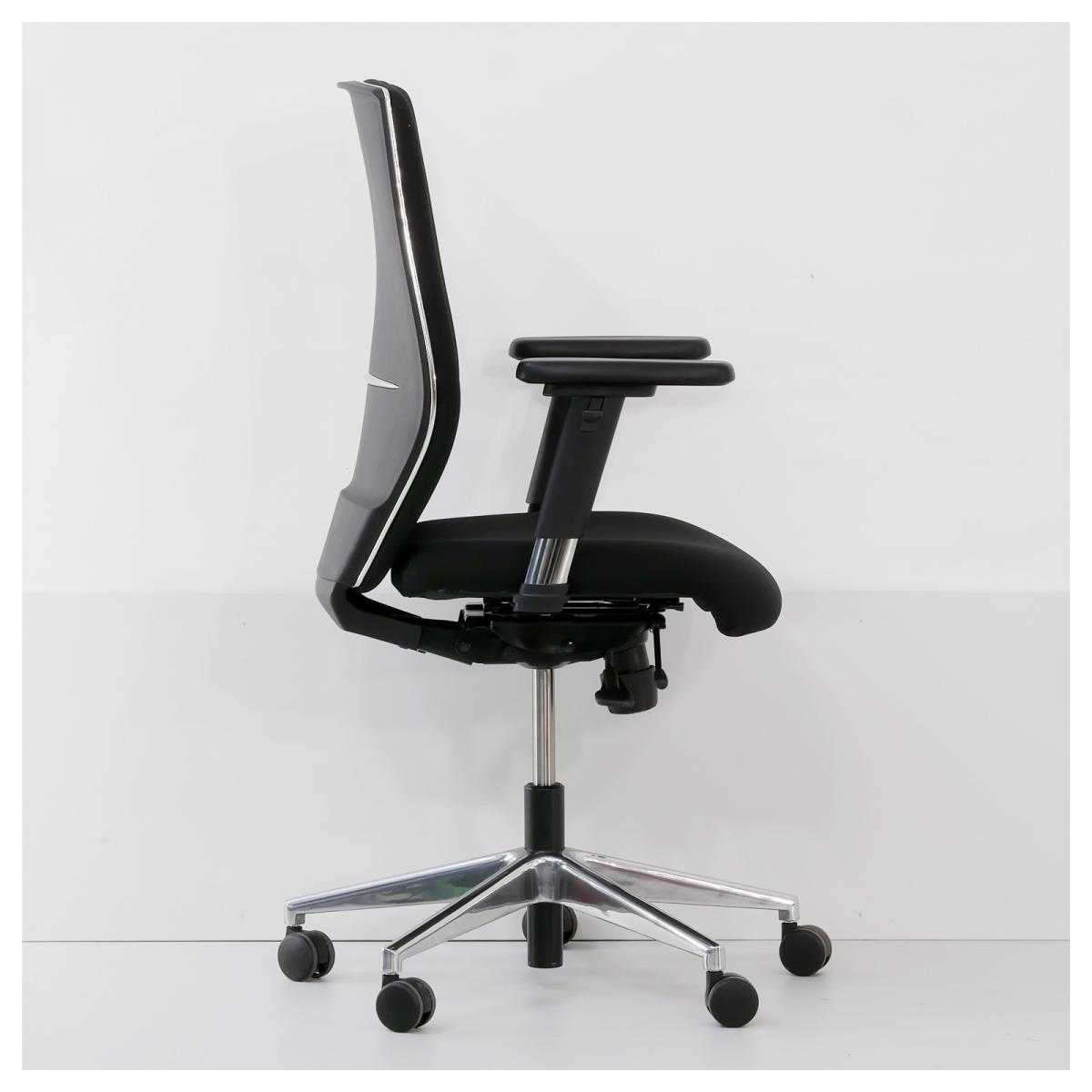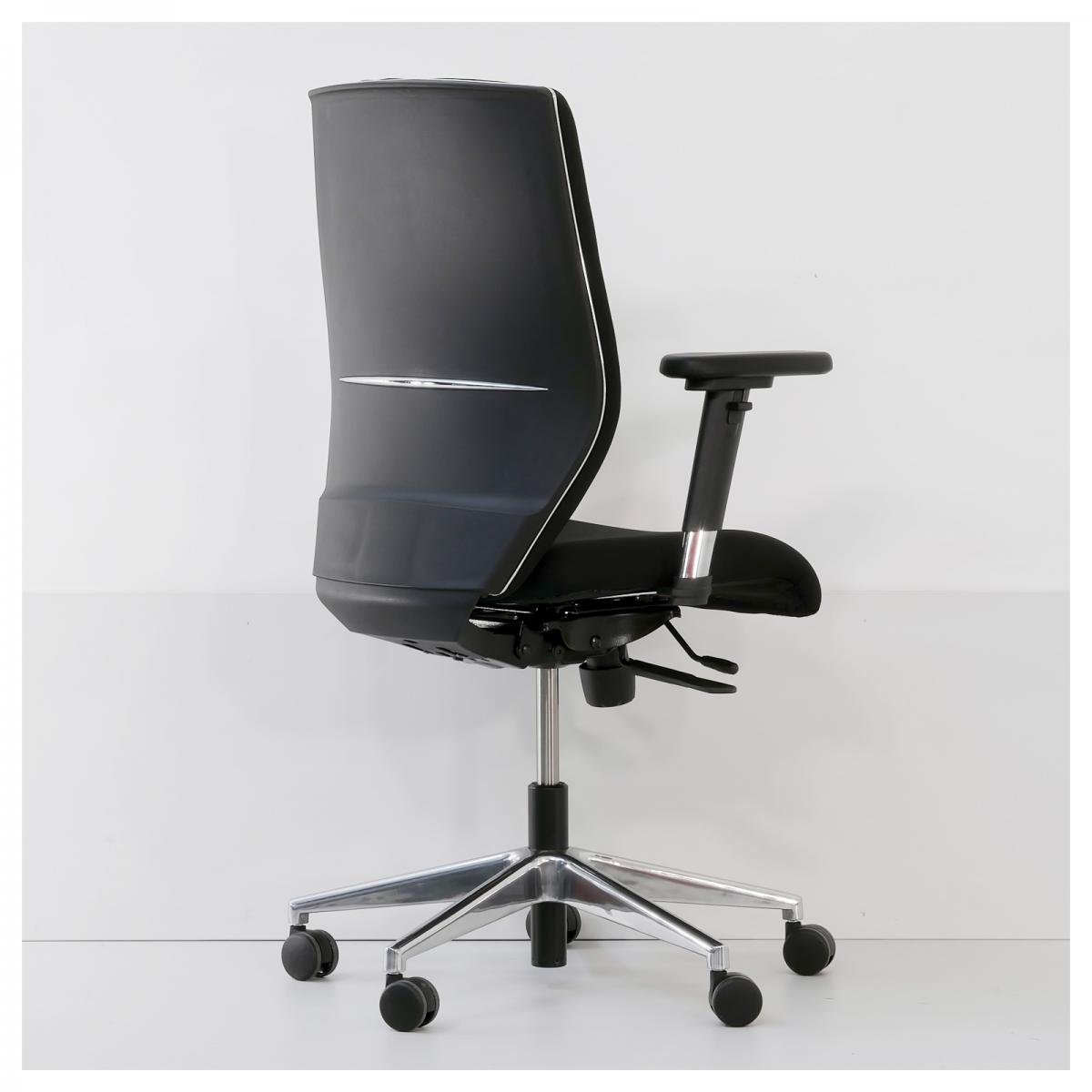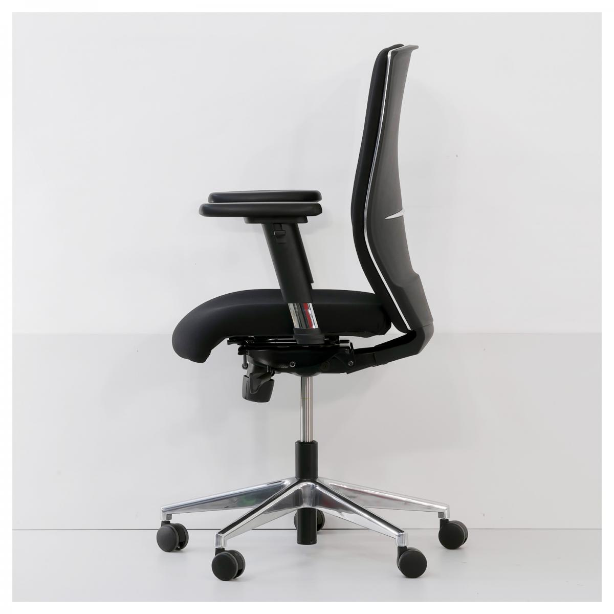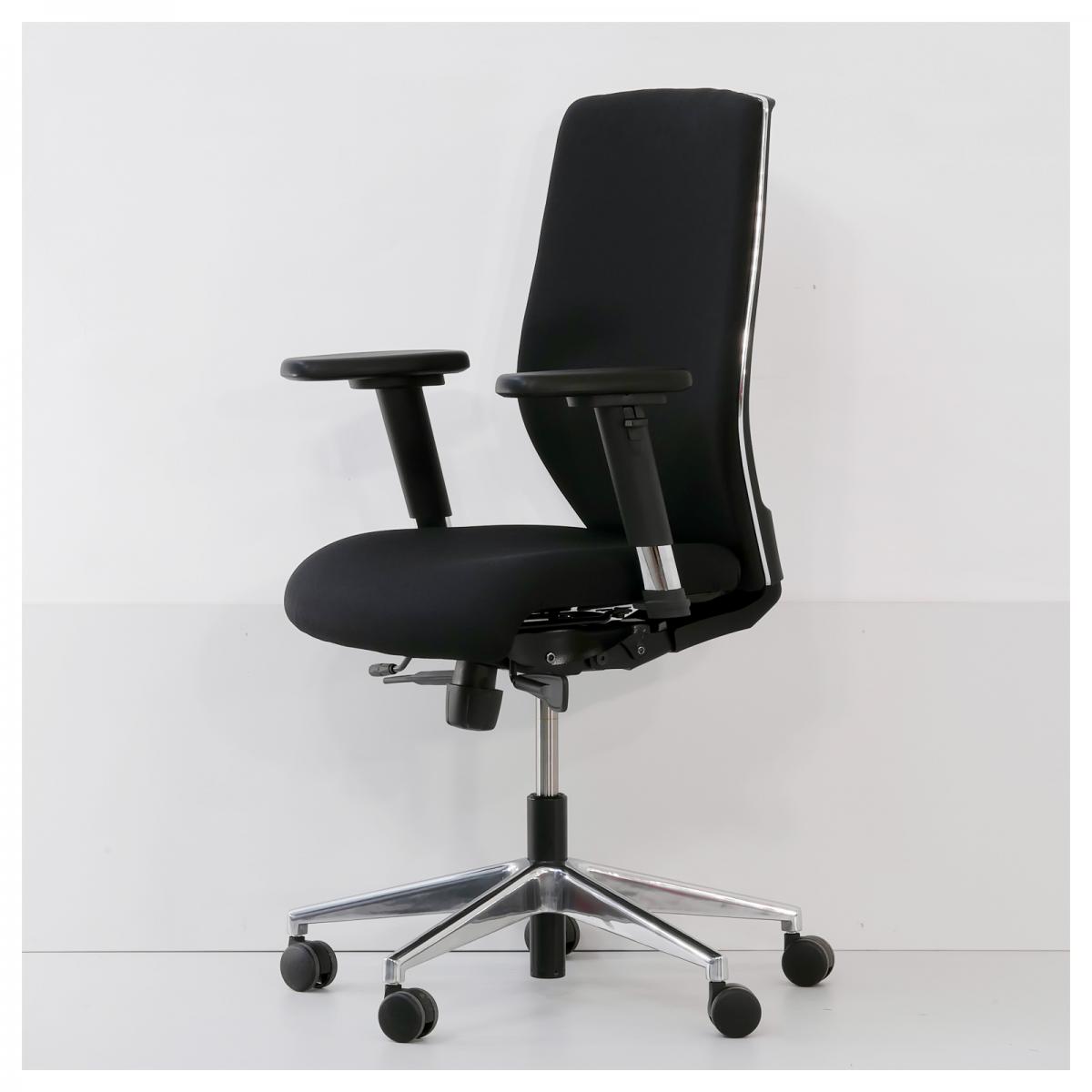 Höhenverstellung per Gasdruckfeder gepolsterte Sitz- / Rückenfläche Sitztiefenverstellung mittels Schiebesitz Synchron- bzw. Wippmechanik mit Gewichtseinstellung höhen- / breitenverstellbare Armlehnen verstellbare Armauflage Rückenlehne rückseitig mit Kunststoffschale 5-Stern-Fusskreuz aus Metall |