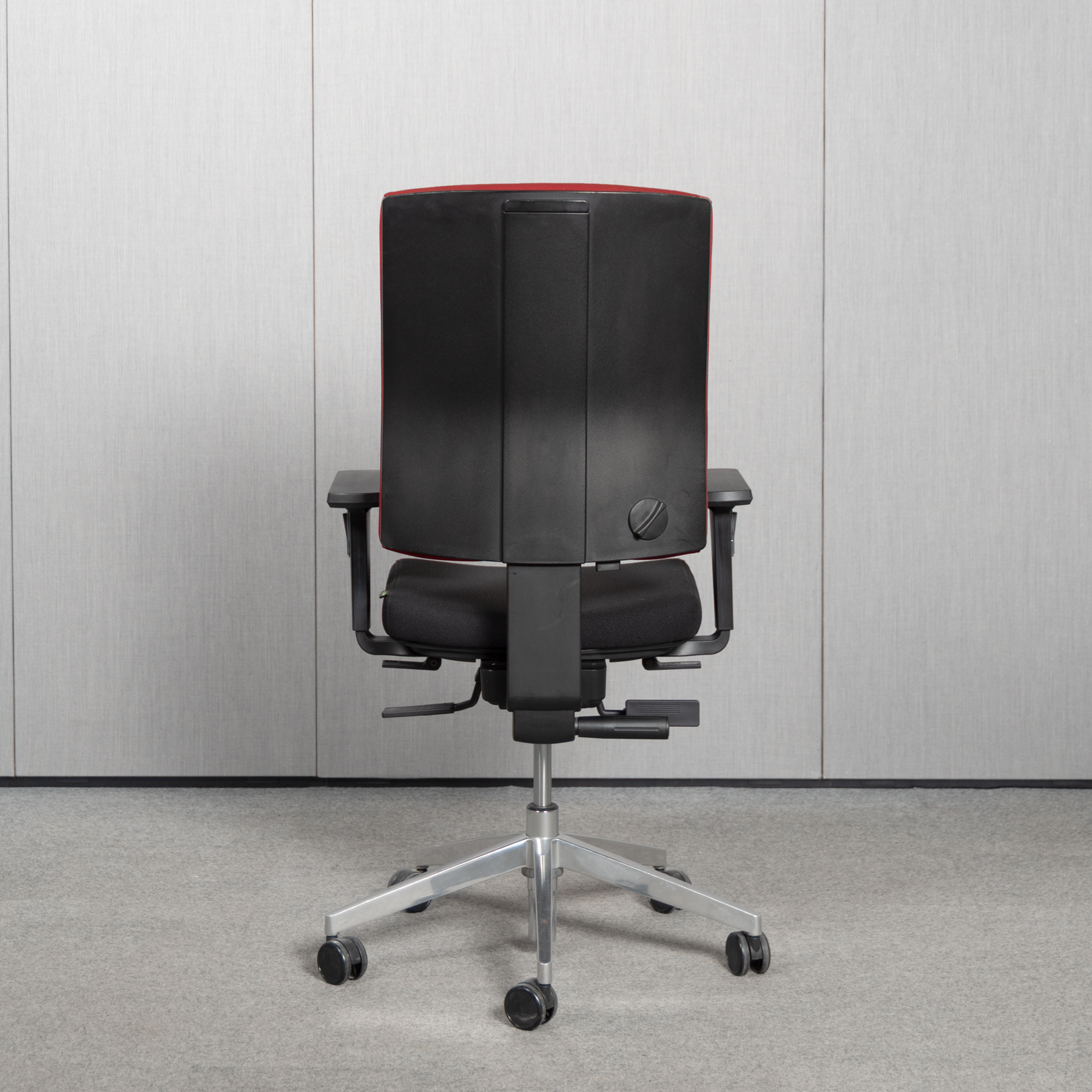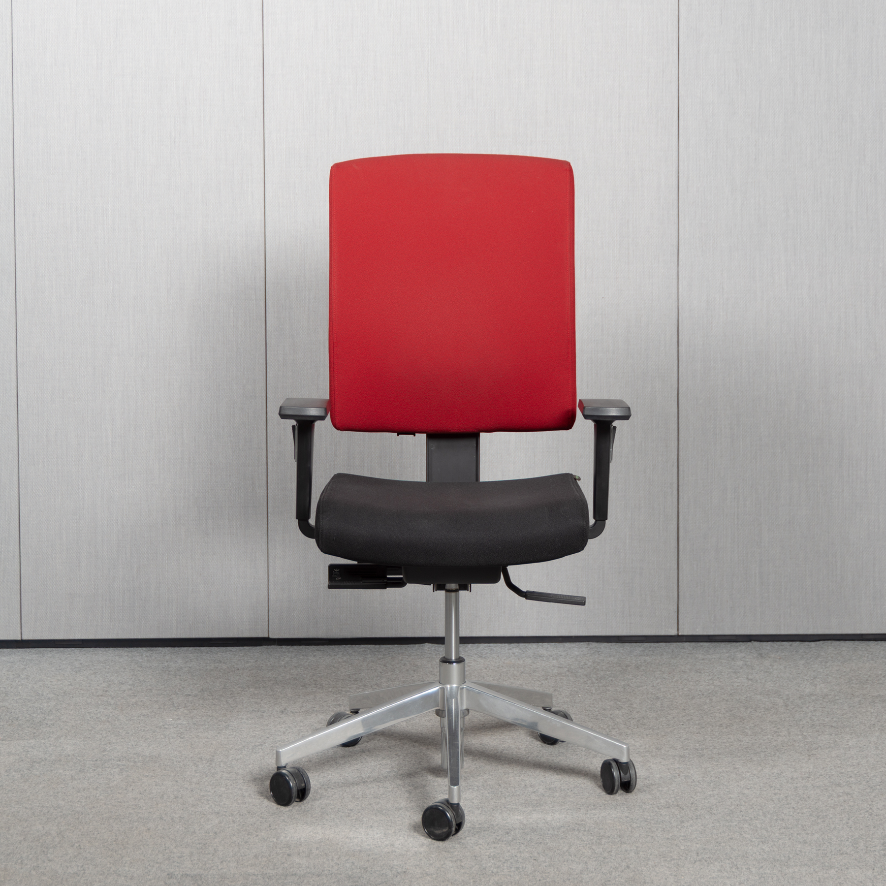 Bezug Stoff: Schwarz Rücken: Rot Fußkreuz, Gasfeder: Aluminium poliert |
