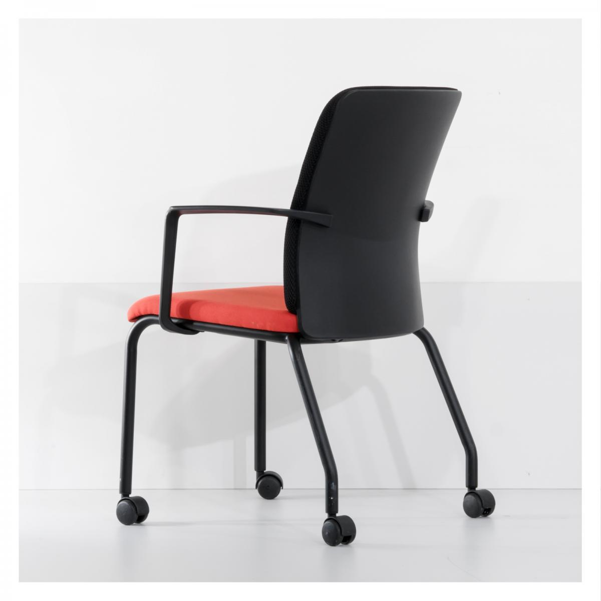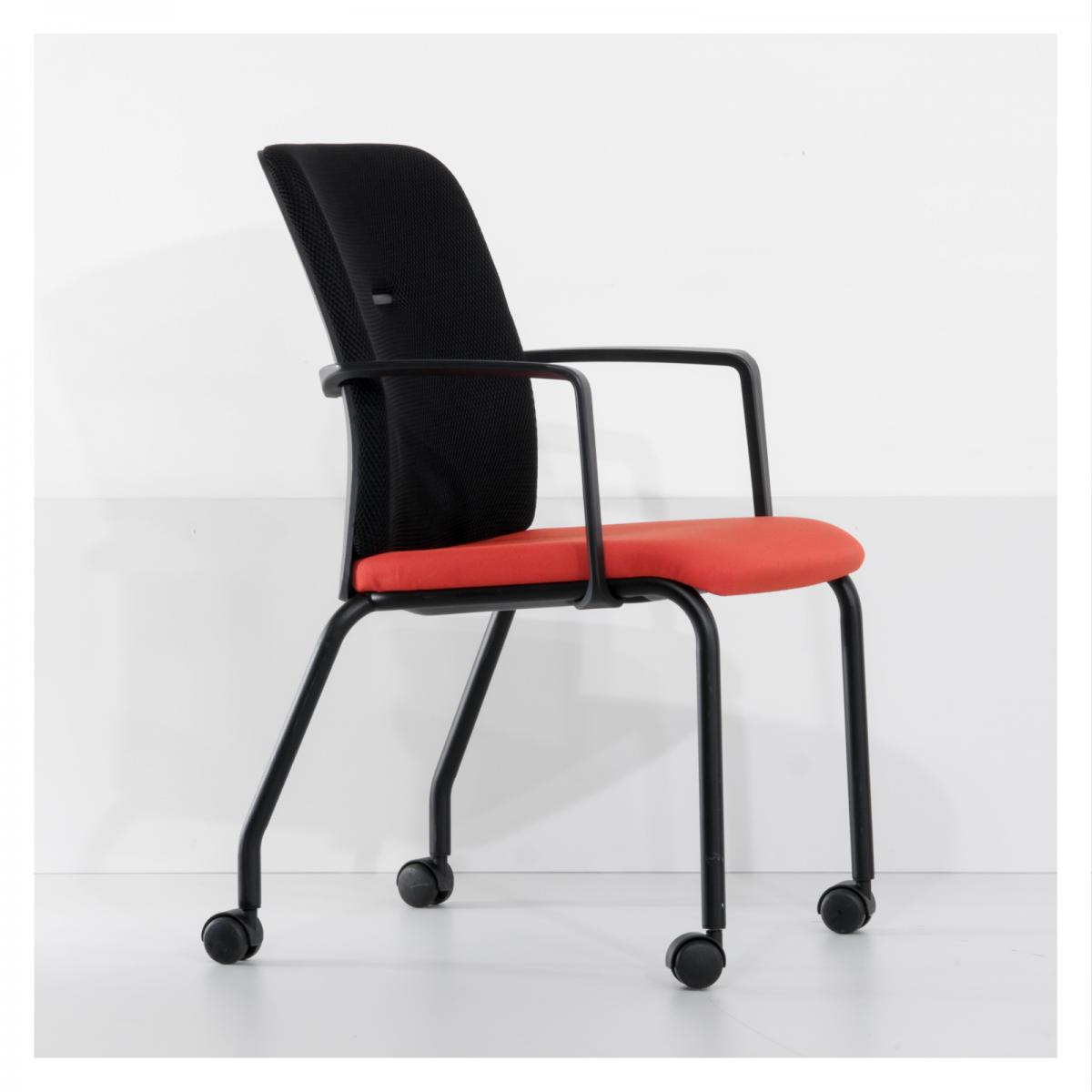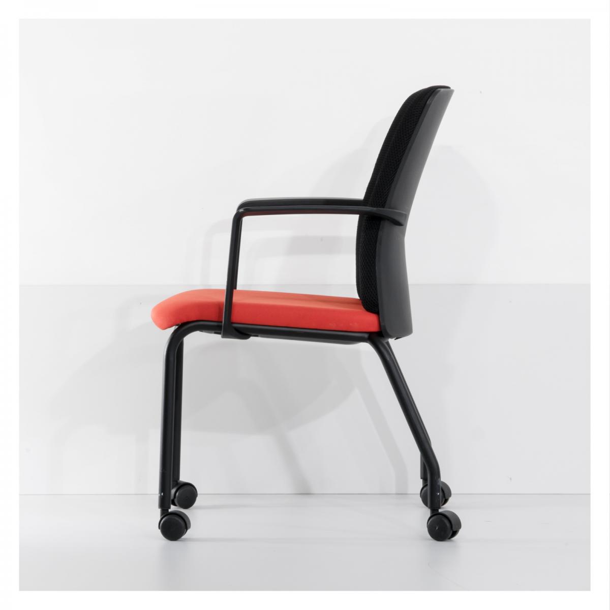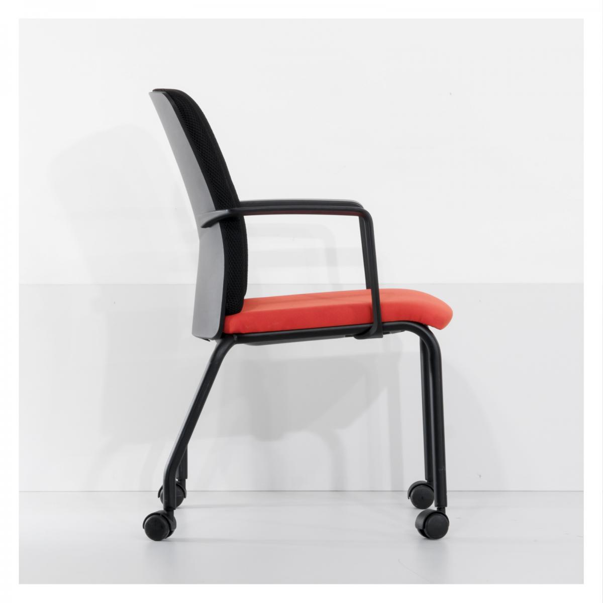 rollbarer Konferenzstuhl Rückenlehnen-Bezug aus 3D-Knit Netzstoff gepolsterte Sitz- und Rückenfläche integrierte Armlehnen Gestell-Ausführung: Rundrohr stapelbare Ausführung 4 Rollen |