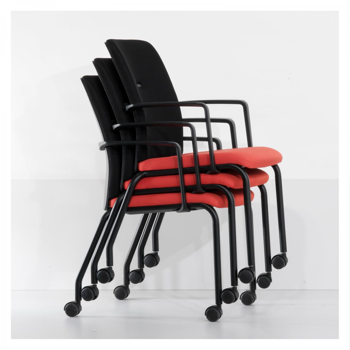 Der Northside von Steelcase bietet dank seiner größeren Sitztiefe und angenehmen Polsterung auch für längere Konferenzen guten Sitzkomfort. Das rollbare 4-Fuss-Gestell in Verbindung mit seiner Stapelfunktion ermöglicht das schnelle, unkomplizierte organisieren von Besprechung, ohne zeitaufwändiges tragen von einzelnen Konferenz- bzw. Besprechungsstühle. |