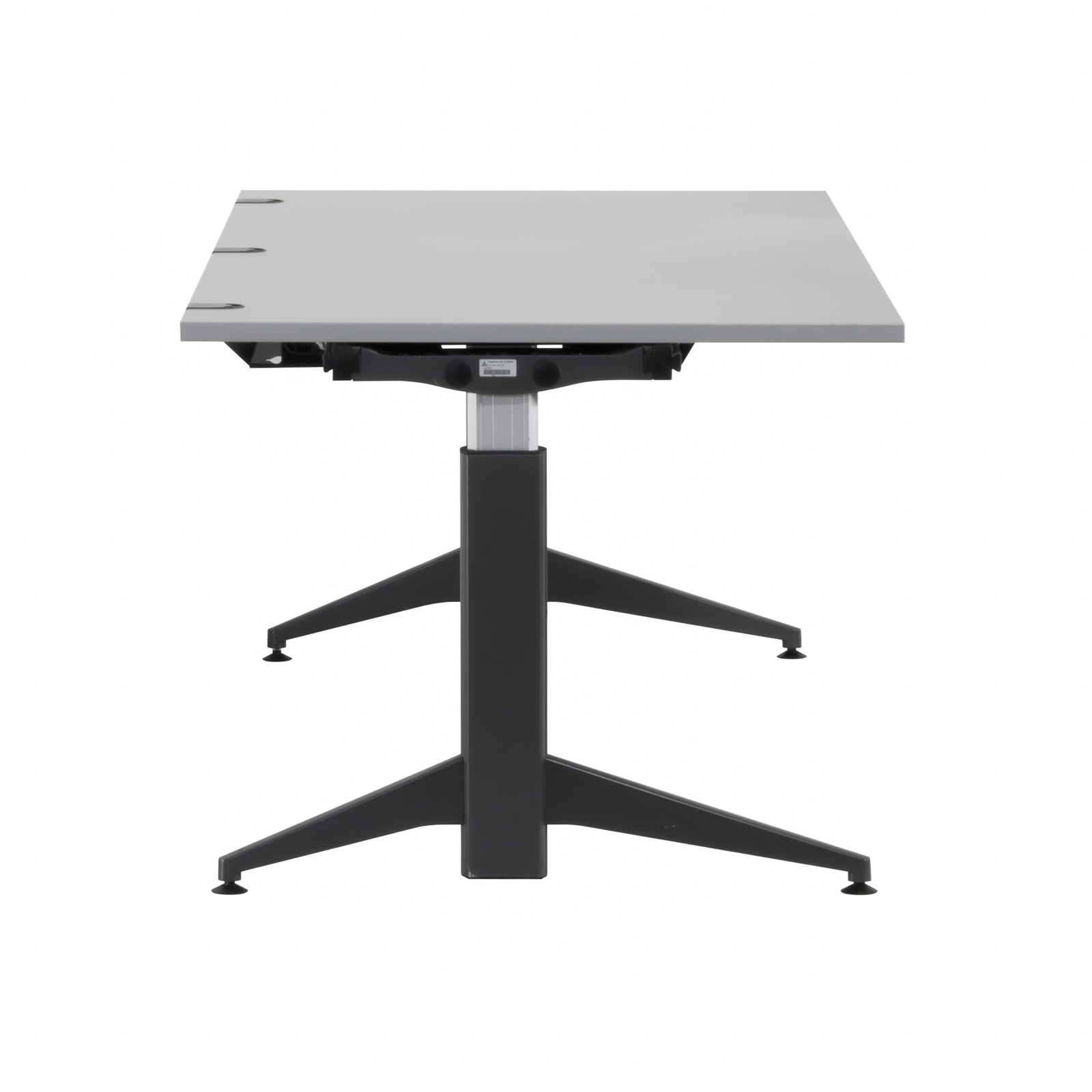 innovatives Traversensystem hochstabiles Metallgestell in T-Fuss-Ausführung Kabelwanne aus Metall 25 mm Tischplatte mit Kabeldurchlässen Tischplatte Melaminharz beschichtet Höhenverstellung von 68 bis 86 cm Tischbeine aus Aluminium einstellbare Stellfüße |