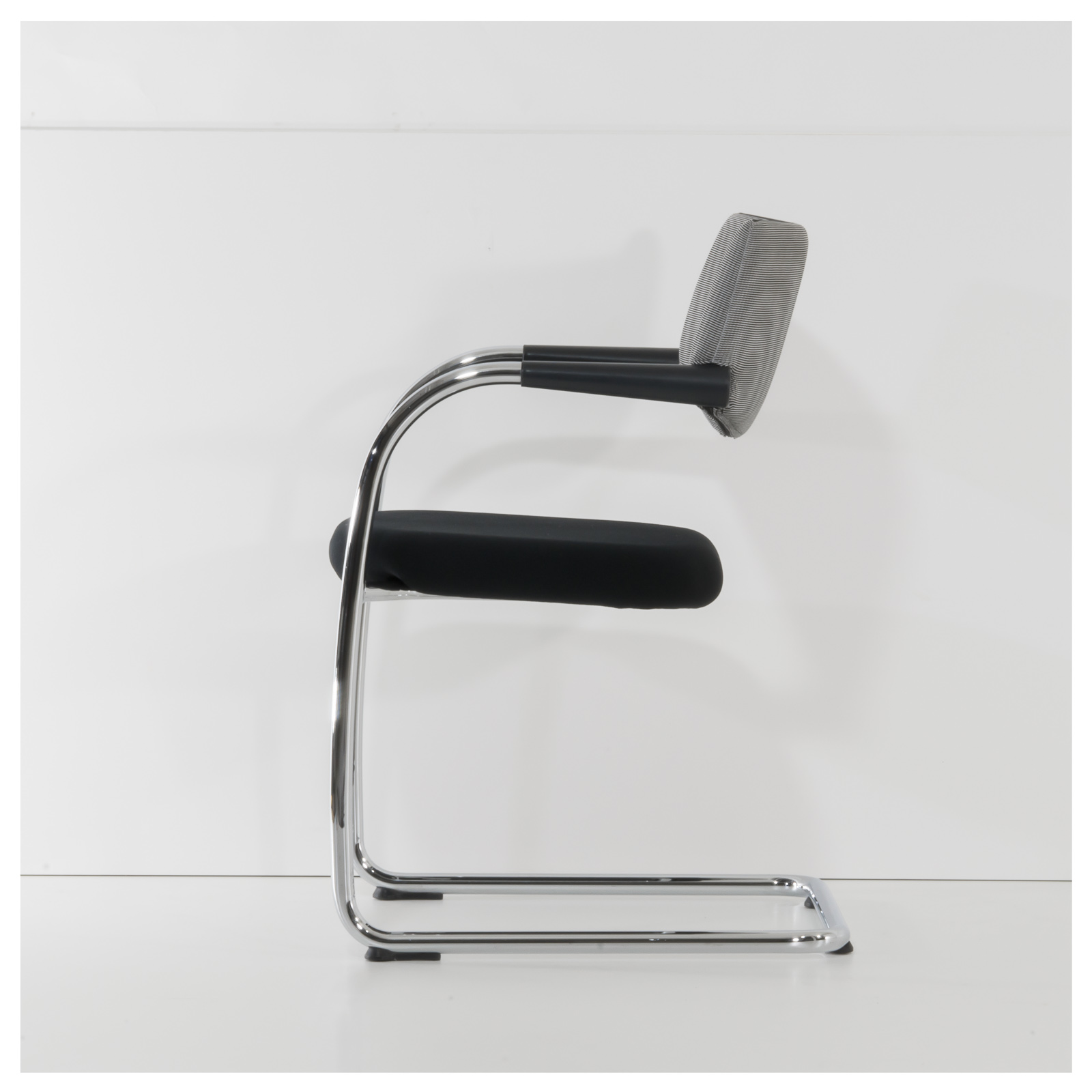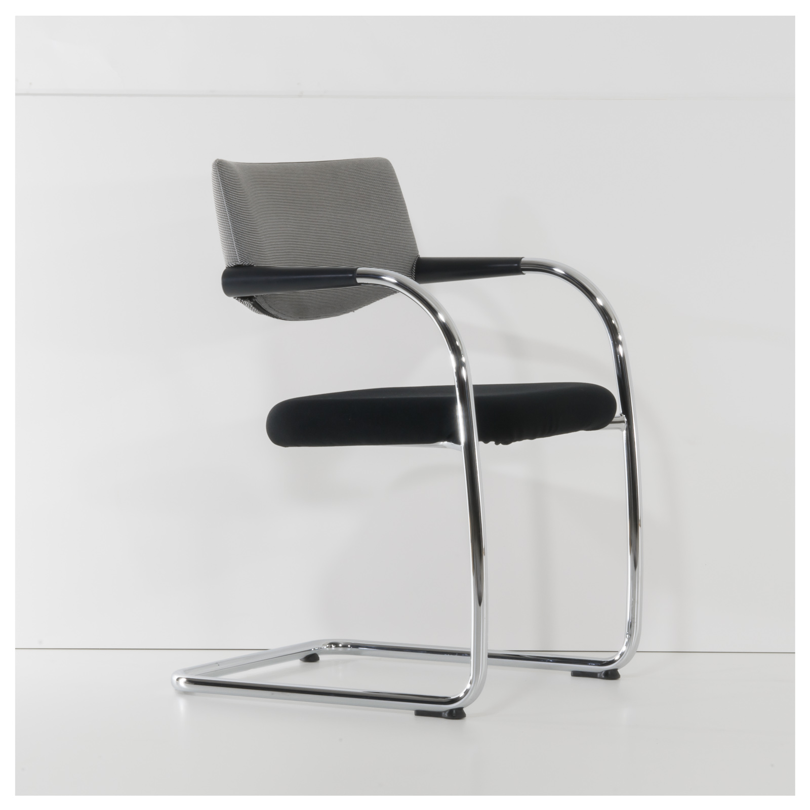 Farbe: | Gestell: Chrom Rückenbezug: Schwarz-Weissgrau Sitzbezug: Schwarz |