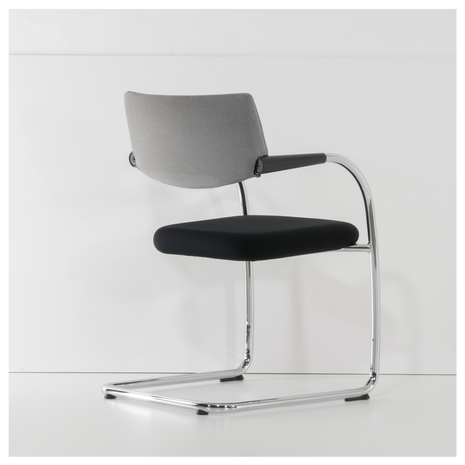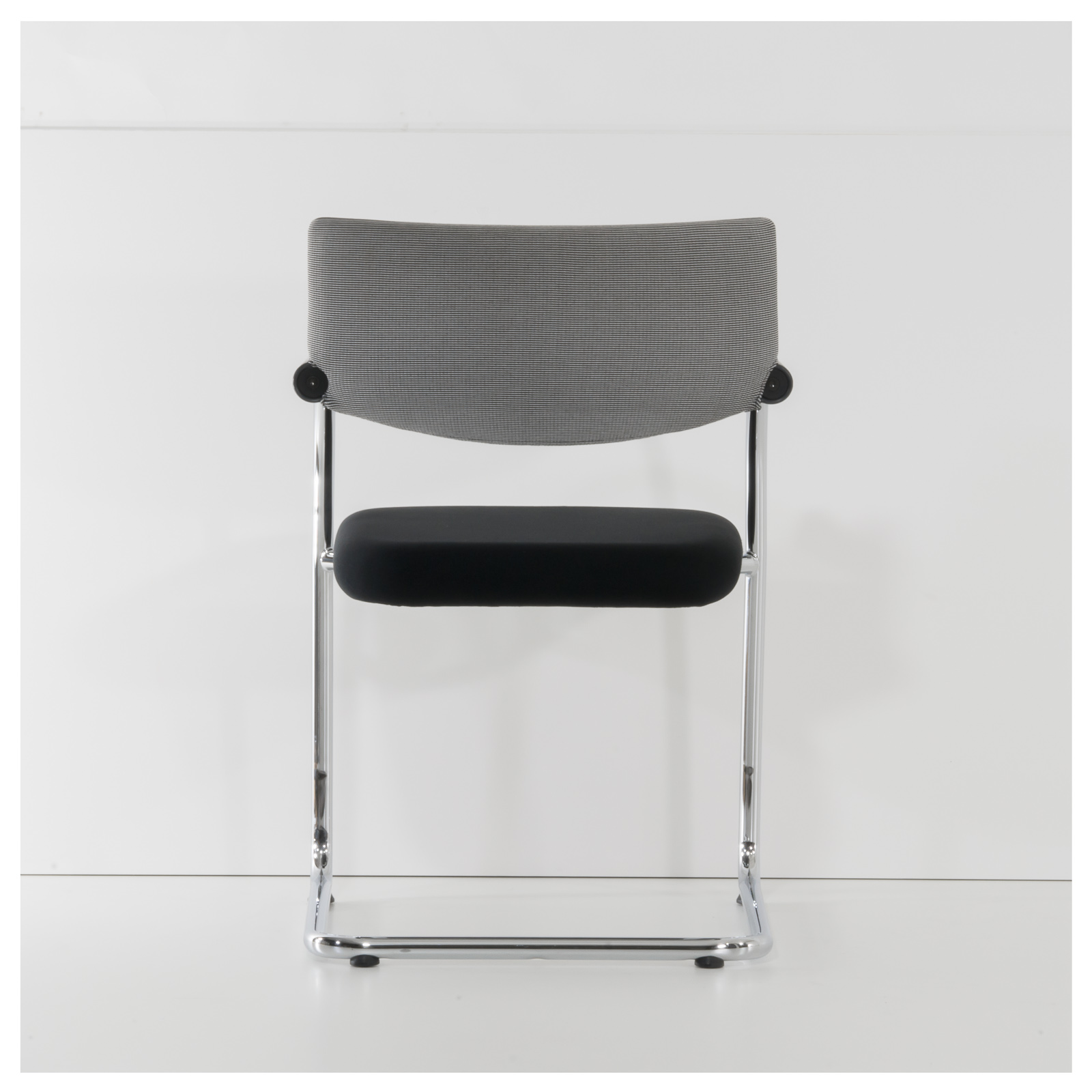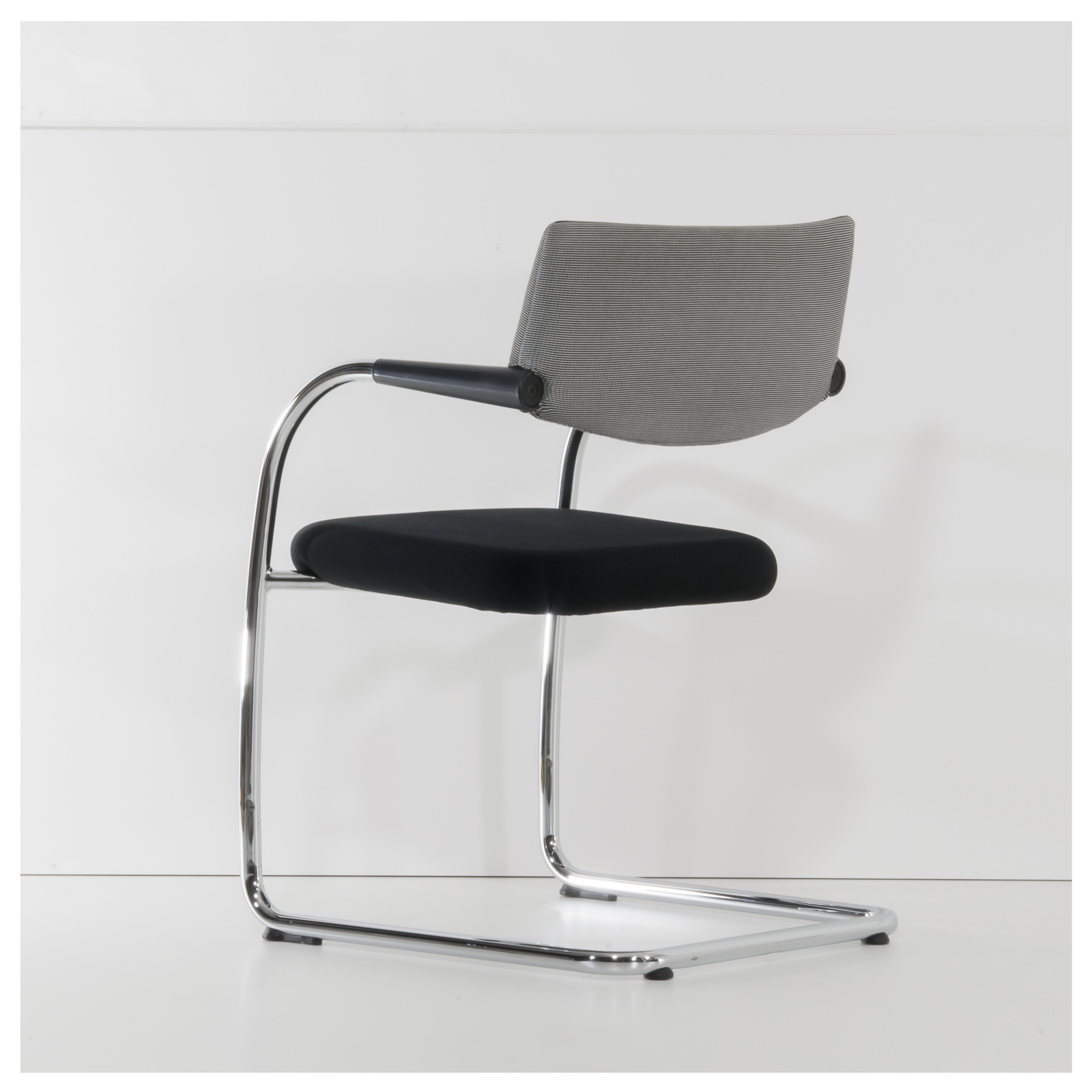 Konferenzstuhl mit gepolsteter Sitz- und Rückenfläche flexible Kunststofflehne mit integrierten Armlehnen abnehmbares Rückenpolster Freischwingergestell aus Stahlrundrohr Bodengleiter aus Kunststoff Designer: Antonio Citterio |
