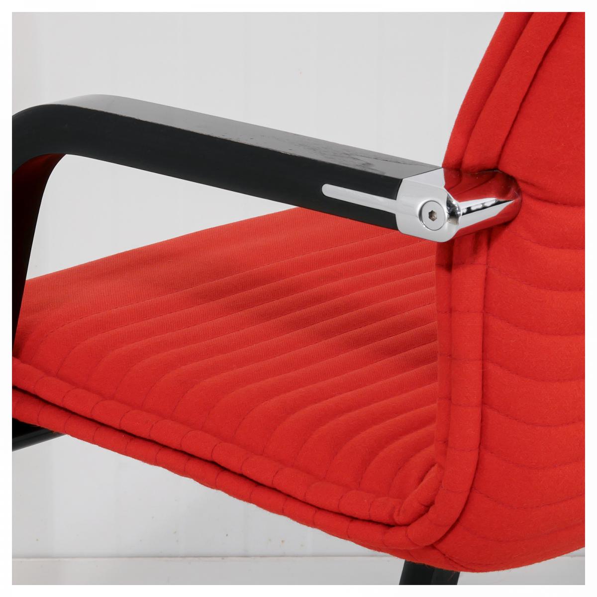 bequem gepolsterte Sitz- und Rückenfläche gesteppter Polsterbezug in Blutorange Freischwinger aus Vollholz geformt |